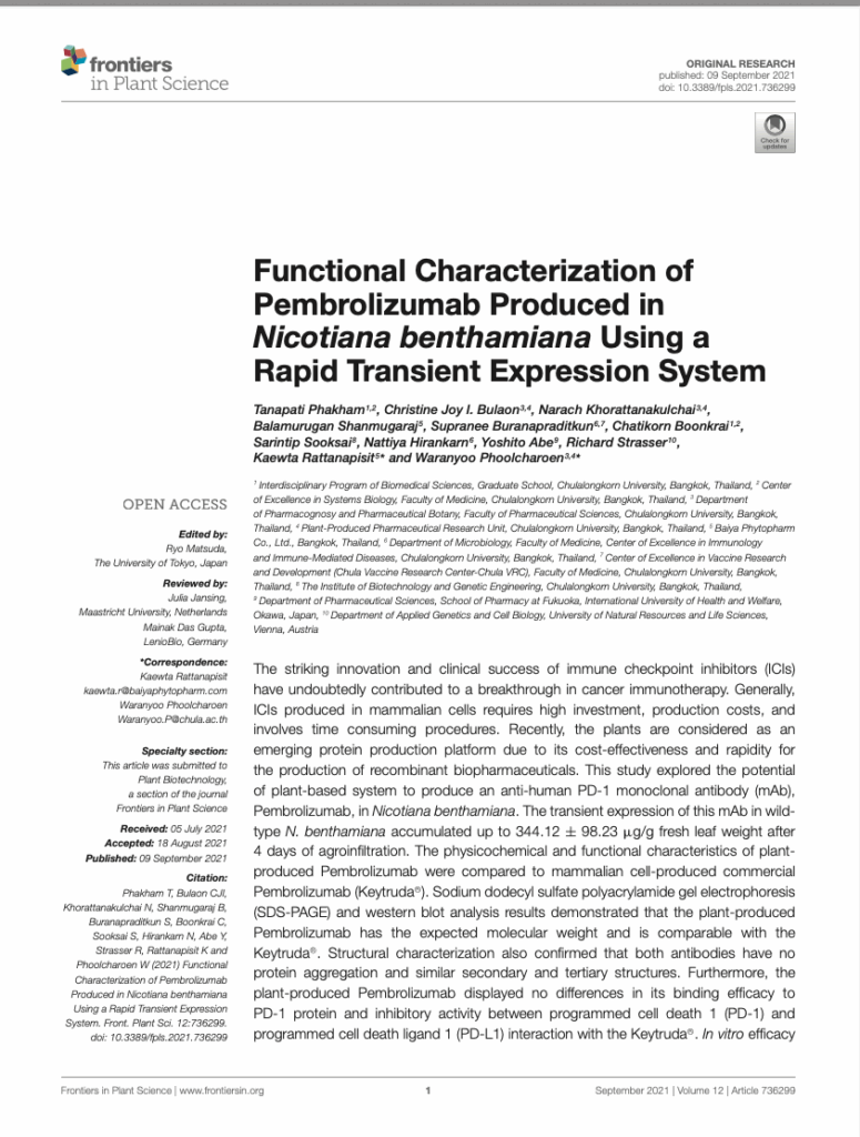 Functional Characterization of Pembrolizumab Produced in Nicotiana benthamiana Using a Rapid Transient Expression System