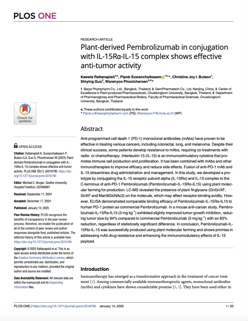 Plant-derived Pembrolizumab in conjugation with IL-15Rα-IL-15 complex shows effective anti-tumor activity