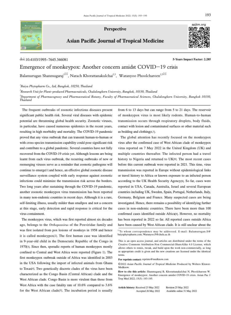 Emergence of monkeypox Another concern amidst COVID-19 crisis